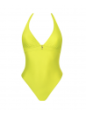 Maillot de bain une pièce avec un décolleté plongeant à l’avant et dans le dos, confectionné en maille unie à texture nid d’abeille.