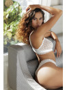 String en laize brodée sur le milieu devant et galon brodé festonné sur les cuisses devant. Dos en tulle. Petit galon dentelle à la taille.