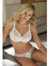 Soutien-gorge souple avec bonnets en trois parties et armatures. Hauts bonnets en galon brodé festonné et bas bonnets en laize brodée. Habillage entregorge et demi-dos en laize brodée. Dos en tulle doublé. Bijou à l'entregorge.