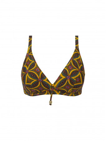 Soutien-gorge souple forme triangle sans armature. Les bonnets sont en galon brodé. Le bonnet est brodée et incrusté d'un petit galon dentelle. Bijou à l'entregorge.