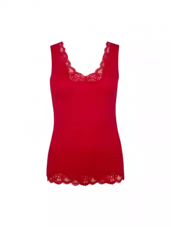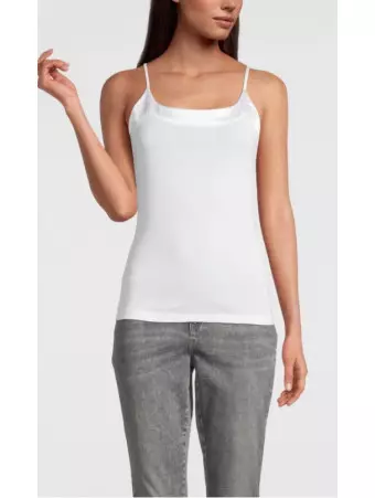 Top 100% soie à bretelles fines maille plissée avec dentelle leavers sur le décolleté.