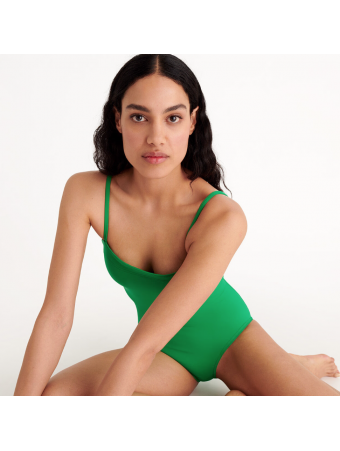 Ce maillot de bain une-pièce forme nageur, décliné dans les coloris de la saison, possède de larges bretelles et un décolleté arrondi.