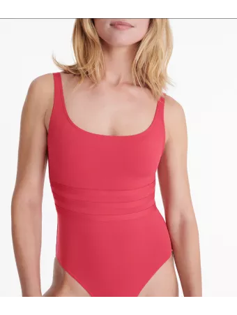 Ce maillot de bain une-pièce forme nageur, décliné dans les coloris de la saison, possède de larges bretelles et un décolleté arrondi.