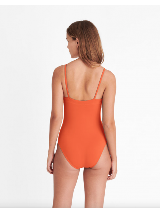 Iconique Eres, plébiscité pour sa ligne pure, ce maillot une-pièce de type nageur s’ouvre sur un décolleté droit encadré par de fines bretelles.