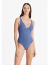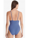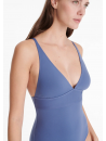 Ce maillot de bain une pièce triangle à fines bretelles droites s'ouvre sur un décolleté en V profond, apportant une touche graphique et féminine.