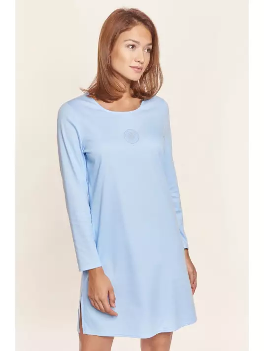 Chemise de nuit manches longues COTON bleu