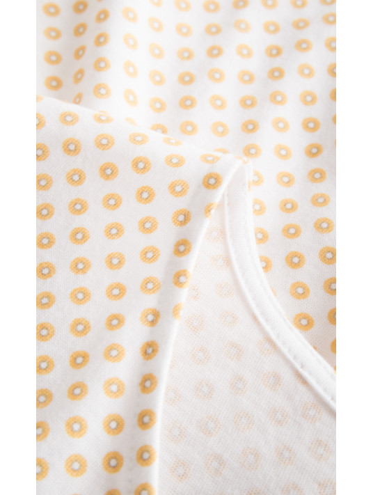 Sa matière 100% coton et sa légèreté font le charme de celui-ci avec ses imprimés à fleurs jaunes.