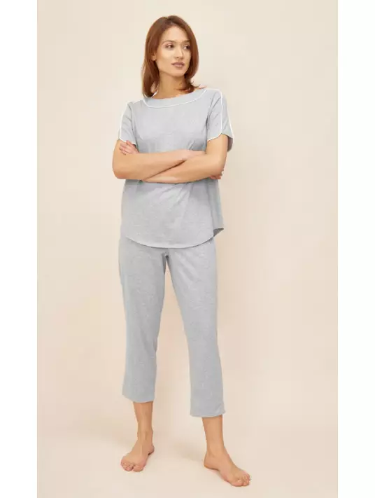 Epuré et plein de charme, ce pyjama est orné de passepoils blancs du col jusqu'aux manches, ce qui rend le look encore plus attrayant.