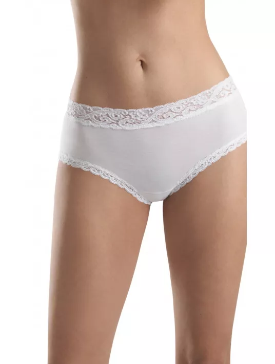 Dotée d'une taille haute et d'un tour de cuisse moins échancré, cette culotte en dentelle se fait oublié sous les vêtements sans perdre en féminité.