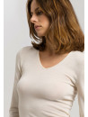 Hanro T-shirt manches longues crème LAINE ET SOIE