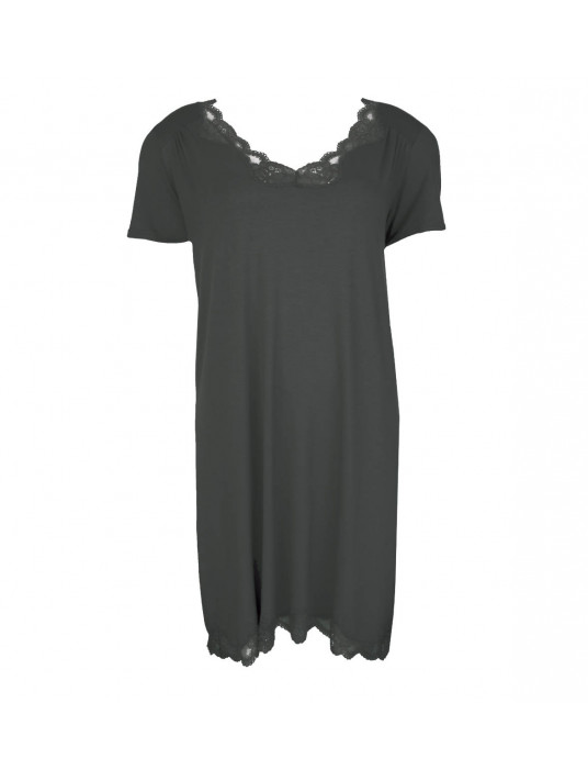 Nuisette en modal. Décolleté devant et bas de jupe en galon de dentelle