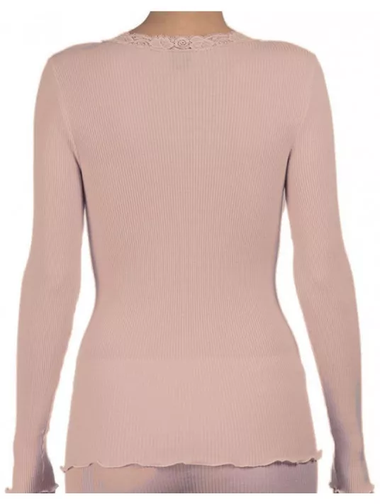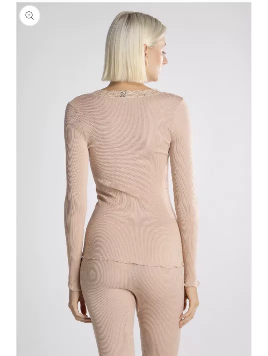 Top manches longues col rond dentelle Nude LAINE ET SOIE