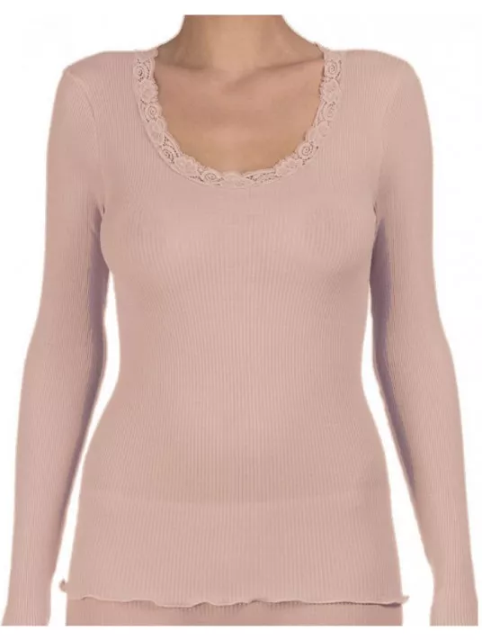Oscalito Top manches longues col rond dentelle Nude LAINE ET SOIE