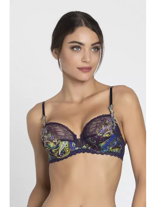 La ligne Dentelle Cashmer de Lise Charmel rayonne avec son imprimé cachemire chic et lumineux. Un élégant imprimé italien sur soie naturelle associé à une sublime Dentelle Leavers.
