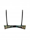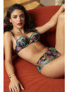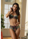 Le bas bonnet ainsi que la basque sont en tulle imprimé. L'entre gorge est agrémenté d'une découpe arrondie au bas et d'un bijou en haut. Les bretelles sont sublimées par des motifs brodés.