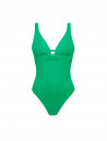 Dans un esprit épuré, la ligne Grâce Infinie de Lise Charmel sublime le corps avec des coupes flatteuses. En détails chics, des anneaux textiles avec un rectangle doré, s’inspirent du symbole de l’infini. Douce et respirante, la matière protège efficacement la peau des UV. Certifiée Lycra® Beauty, elle galbe le corps avec un confort unique.