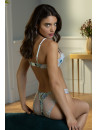 Évoquant la magie enchanteresse de la Perse, **Rêve en Fleurs** de Lise Charmel dévoile une broderie florale exceptionnelle mêlant huit nuances distinctes à un somptueux imprimé végétal. Des pivoines s’épanouissent avec grâce sur de délicats rameaux, formant un paysage imaginaire fascinant. Les tons doux sublimés par un fond Azur, illuminent la peau avec une légèreté envoûtante. Les coupes, enrichies de détails graphiques et de motifs ajourés, exaltent la silhouette. Une lingerie raffinée, confectionnée en viscose, pour un style chic et intemporel.