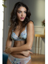 Le haut du bonnet est sublimé par un galon brodé multifils festonné, incrusté avec finesse sur une maille imprimée et ajourée. Le bas du bonnet se distingue par une délicate confection en tulle imprimé. La basque, ornée de broderies multifils festonnées vers le bas, intègre une élégante découpe de maille imprimée au dos. L’entre-gorge, avec sa découpe arrondie en tulle, est magnifié par un bijou scintillant. Les bretelles, quant à elles, sont élégamment rehaussées de motifs brodés multifils, ajoutant une note de raffinement.