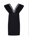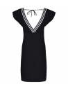 Robe en maille unie ornée d'un élastique graphique qui sublime les décolletés avant et arrière. Un lien au dos permet d'ajuster l'ouverture du décolleté.