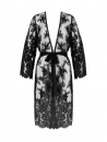 Déshabillé en dentelle festonnée en bas et aux manches, avec ceinture en satin de soie. 93% Polyamide, 6% Soie, 1% Elasthanne