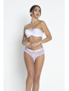 Taille croisée en maille douce pour le confort. Dos en broderie festonnée avec une découpe en transparence ornée par une délicate incrsutation de motifs.