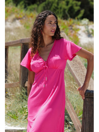 L' imprimé Ikat Vert-Orange d'un esprit surf, offre des silhouettes au caractère affirmé et saisissant.