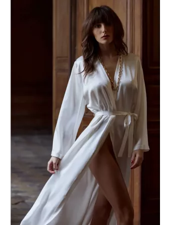 Confortable et élégant, ce déshabillé long en soie de la marque Marjolaine est idéal pour un moment de douceur à la maison. Dans son satin nuance jaune solaire, il ondulera le long de vos courbes avec charme.