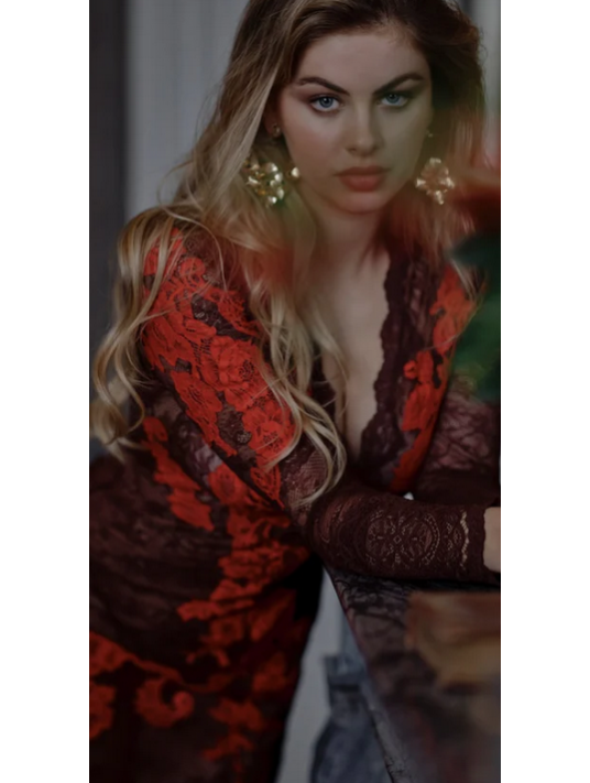 Gros coup de cœur pour cette somptueuse nuisette longue à manches, entièrement réalisée dans une dentelle fine et sophistiquée.