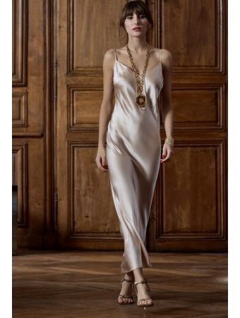 Confectionnée en maille douce et sculptante, cette silhouette flatte par ses lignes obliques et son décolleté orné de dentelle et d'un bijou doré. Ses bretelles amovibles permettent de la porter croisée ou nouée selon vos envies.