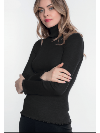 Moretta Top manches longues col rond noir LAINE ET SOIE
