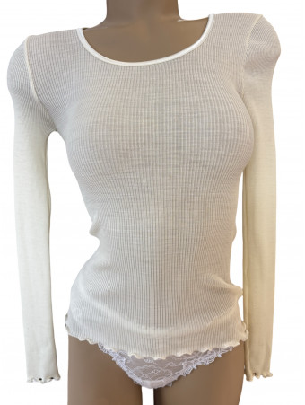 Moretta Top manches longues col rond écru LAINE ET SOIE