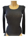 Moretta Top manches longues col rond noir LAINE ET SOIE