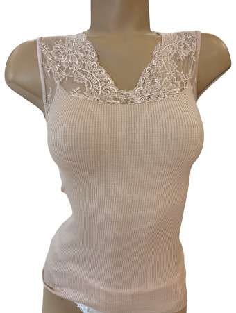 Décolleté rond avec galon de satin très fin.