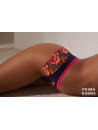 Féminin et coloré : ce string luxueux est orné de broderies dans une couleur contrastante et chaleureuse.