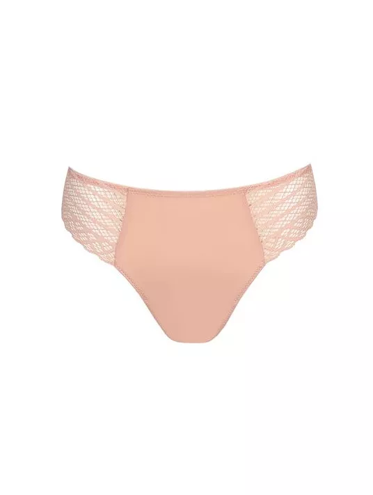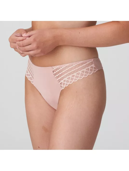 String confectionné dans un tissu lisse avec dentelle géométrique au niveau des jambes. Collection East End de TWIST Prima Donna