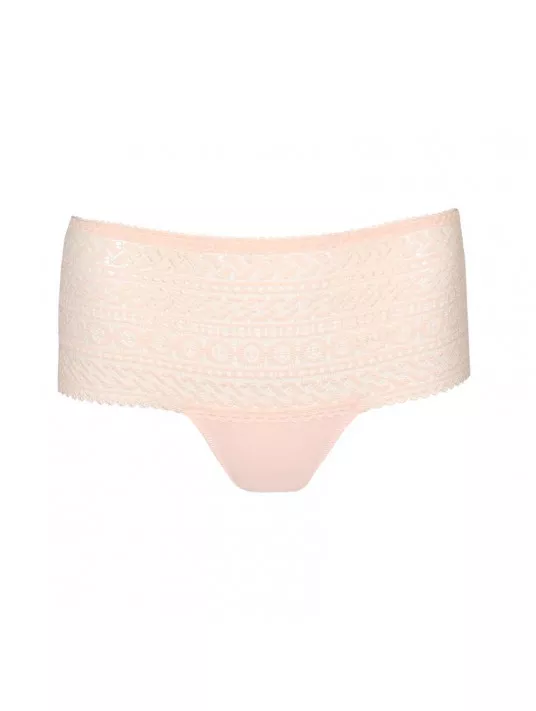 Shorty avec une découpe haute sur les jambes et des empiècements en tulle ou en dentelle sur les fesses.