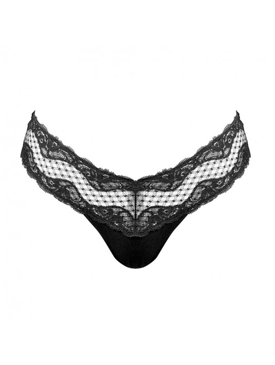 Shorty string entièrement réalisé en tissu treillis avec dentelle florale tout autour Black, noir, pour un look purement sensuel.