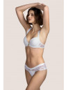 Cette collection est une combinaison parfaite de tulle transparent et de bande de dentelle Leavers avec des motifs floraux, subtilement décorée d’éléments en tissu sobre et d’un bijou surprenant au niveau de l’entre-bonnet. Un mariage parfait entre des matières européennes qui donne de la personnalité et une force de caractère à une collection à la fois fonctionnelle et tendance.