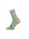 Ces chaussettes combinent un imprimé floral joyeux avec un joli chat habillé en grenouille. C'est comme une fête insolite pour vos pieds !